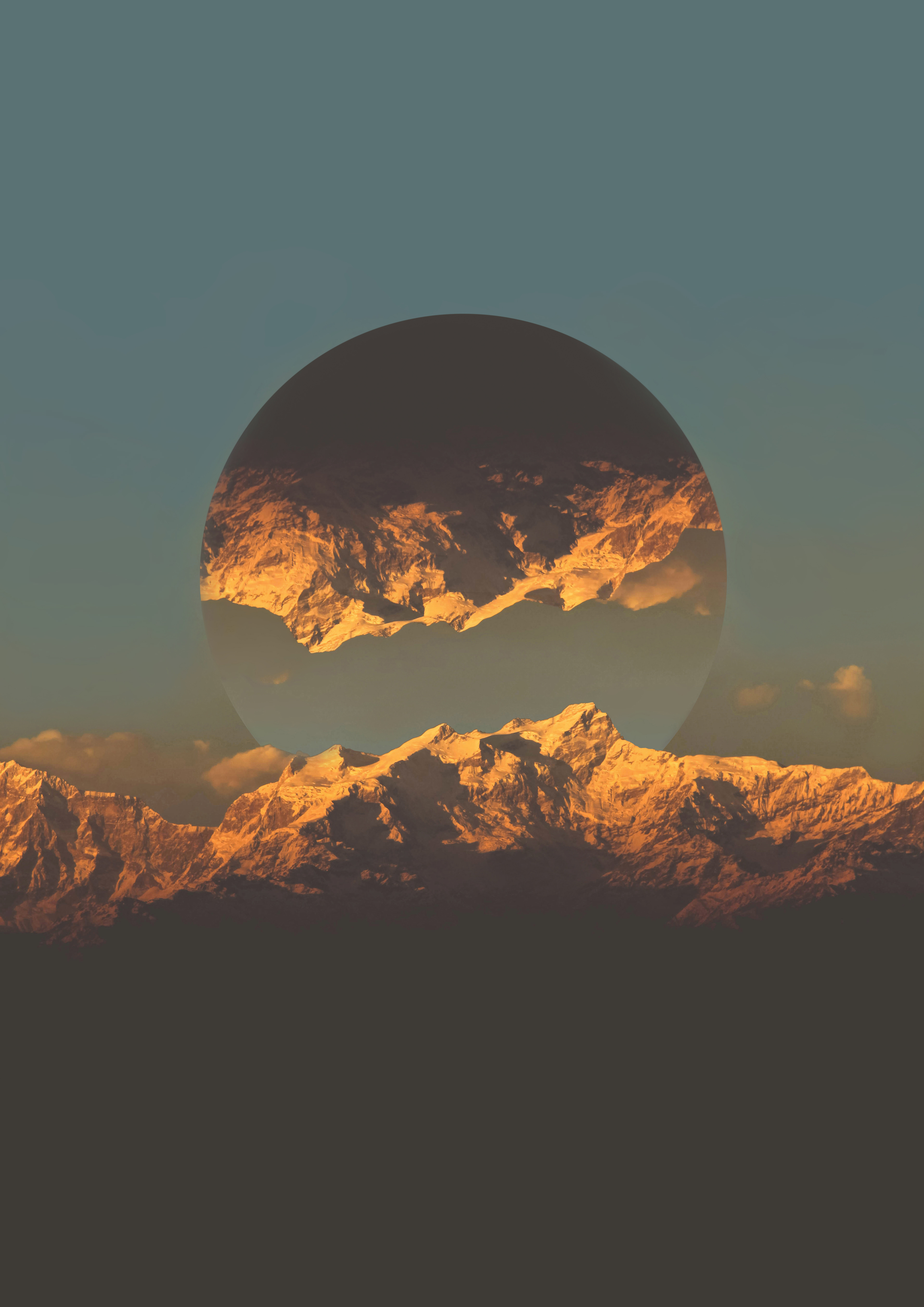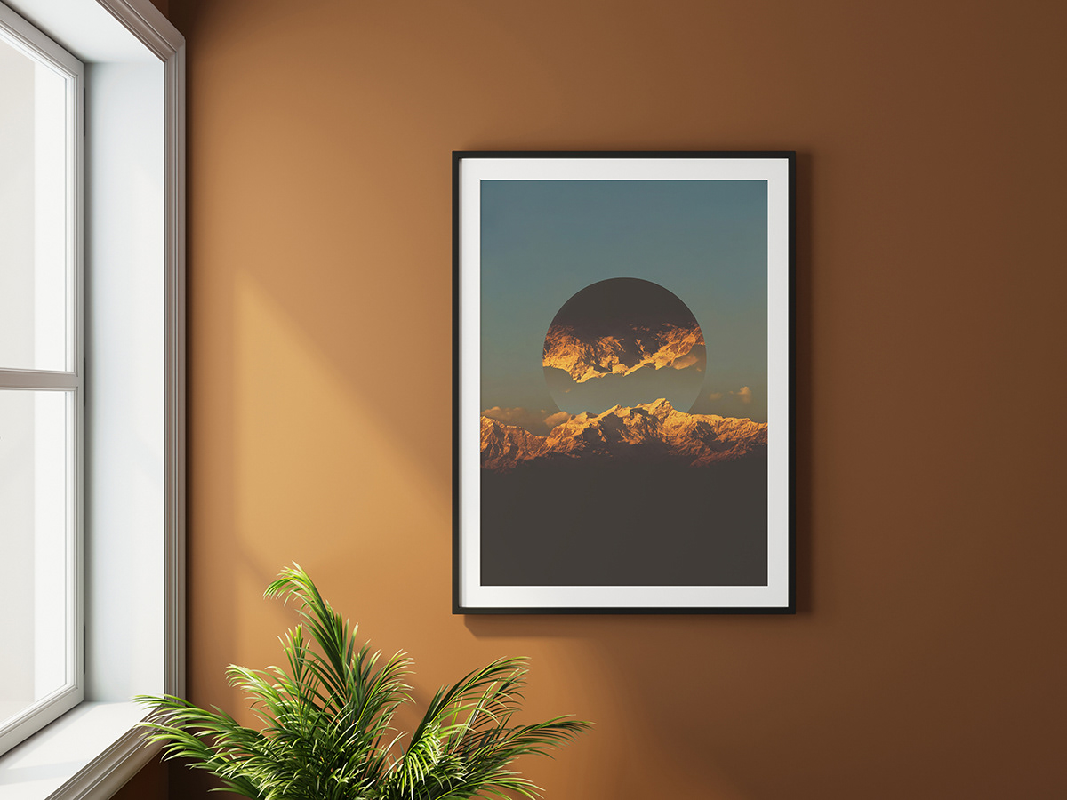 Himalayas is a signed limited edition of 80 fine art photography giclée prints (50 × 70 cm), featuring a sunset over the Himalayan range contrasted with bold geometric forms. Blend of nature and minimalism.